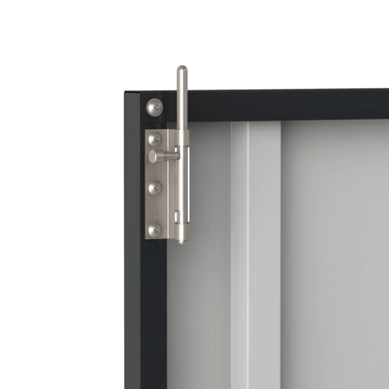 Pour un accès facile, l’abri à vélos en métal Duramax est équipé d’une double porte large de 167cm. La fermeture se fait à l’aide d’un système de verrouillage à 3 points ce qui évite la pose des serrures internes supplémentaires et assure la sécurité de votre contenu.