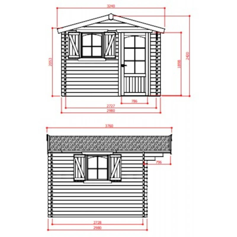 Abri De Jardin 8,88m² En Sapin Blanc FSC 40mm CHAMONIX + Shingles Rouges – SOLID