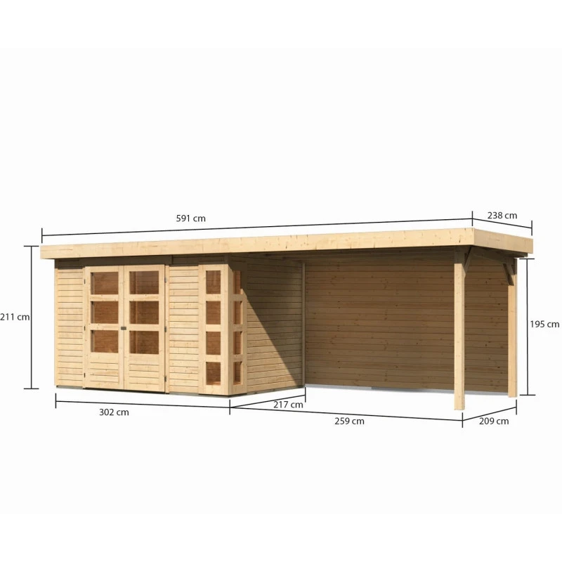 Abri De Jardin En Bois Massif 6,55m² Kerko 4 Avec Appentis 280cm Et Paroi Arrière – Karibu