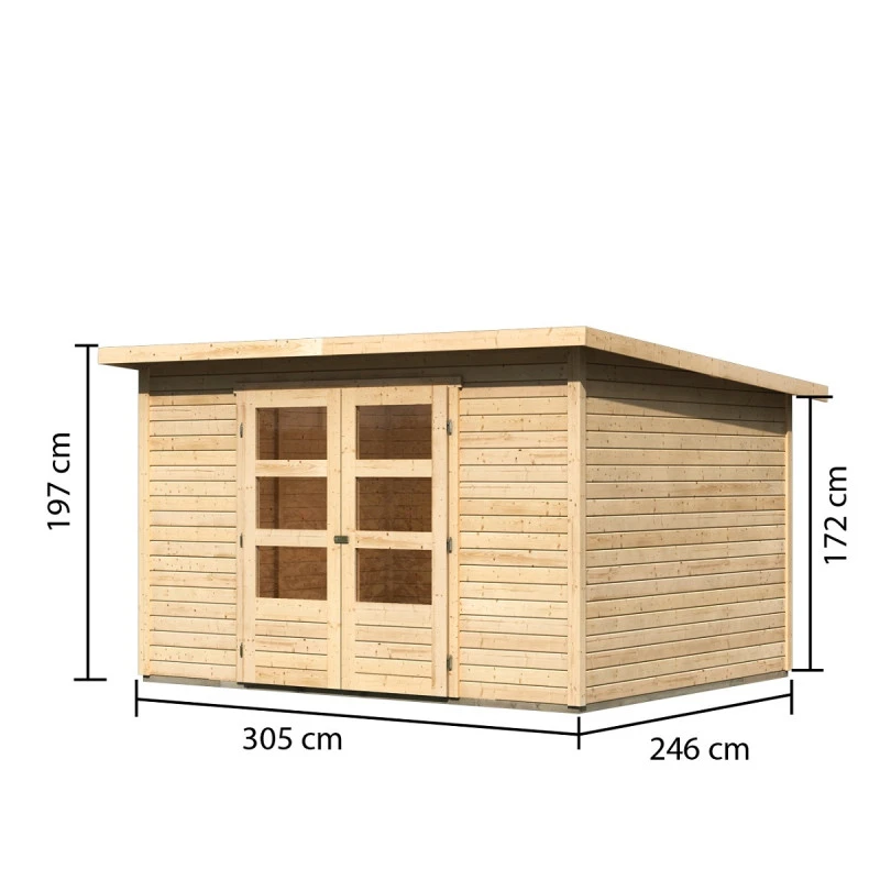 L’avis du spécialiste sur l’abri de jardin en bois massif 7,50m² Stockach 5 – Karibu :