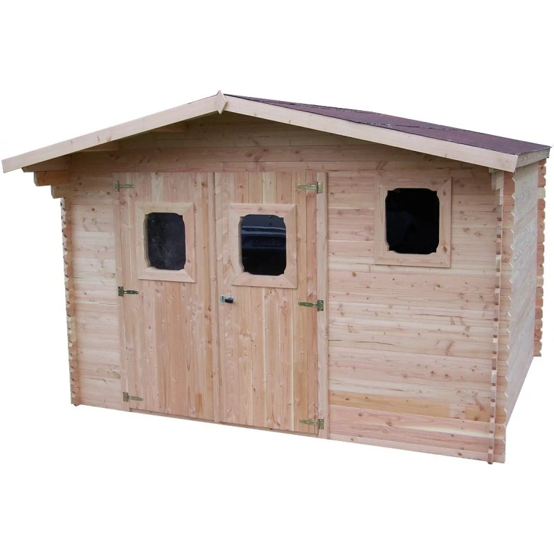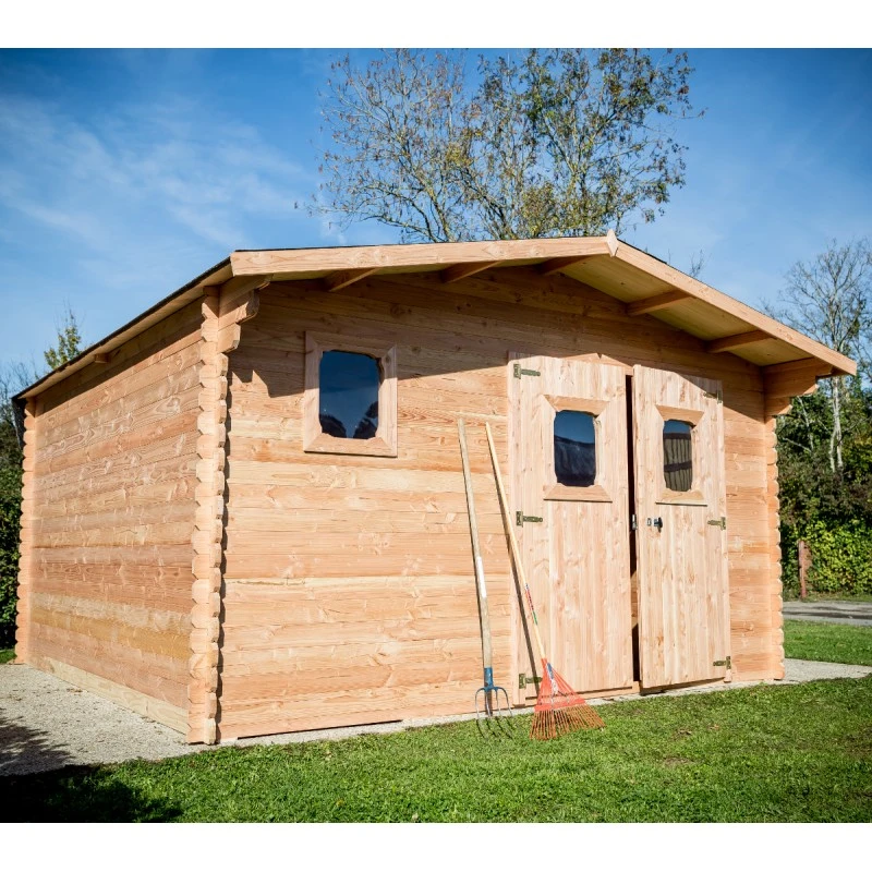 Abri De Jardin En Douglas DOMMAR 15,27m² Madriers 28mm + Couverture Onduline – HABRITA