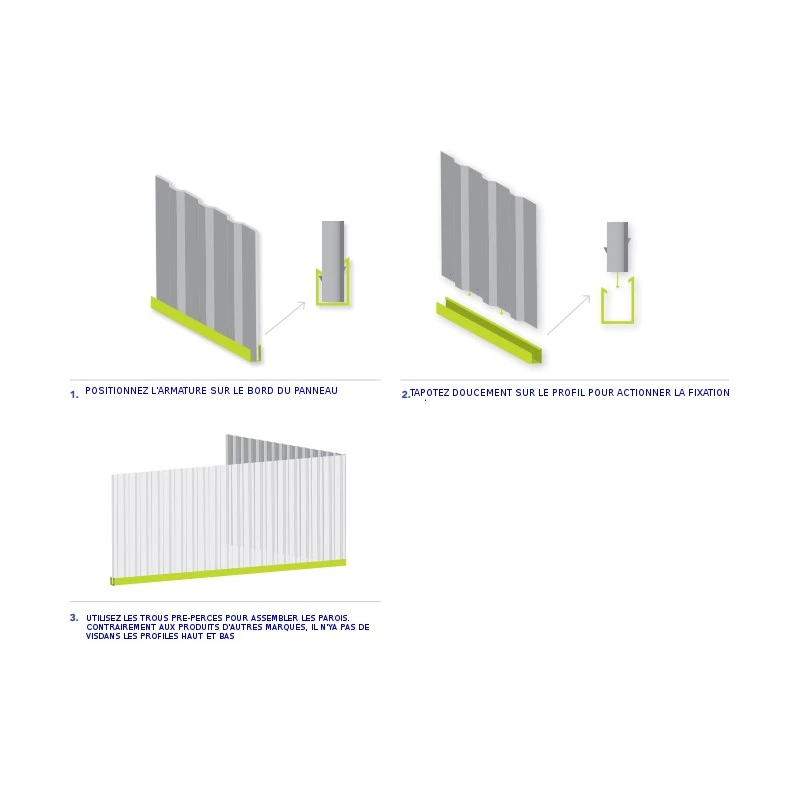 Grâce au système breveté SnapTite, le montage s’effectuera très simplement. Vous gagnerez 08% de temps au montage grâce à 75% de vis en moins.