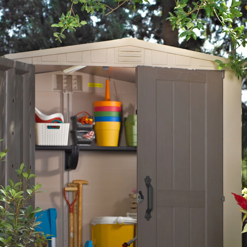 L’abri de jardin Sydney est un nouveau produit de la marque Keter dont la couleur crème, imitation bois s’intégrera parfaitement dans votre extérieur. Son atout majeur, c’est la grande hauteur de ses parois – 187 cm, qui le place parmi les leaders du marché. Livré avec deux étagères, l’abri Sydney vous offrira la possibilité de ranger vos outils de manière propre et ordonnée.