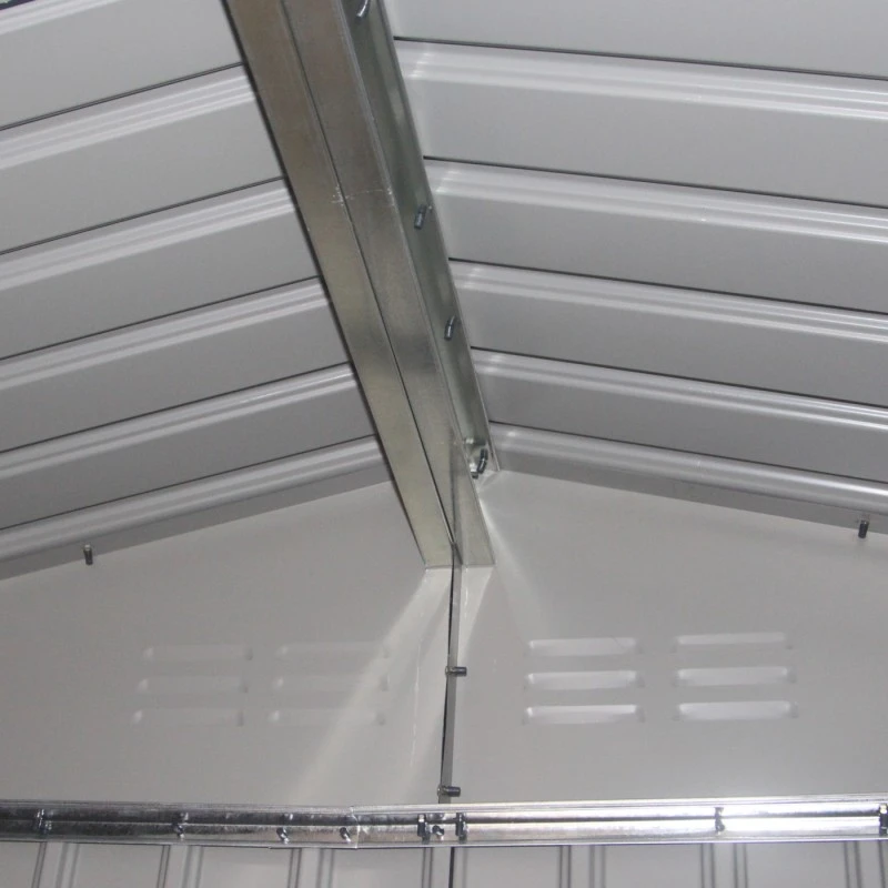 Cet abri en panneaux métalliques First de X-Metal en acier galvanisé à chaud offre une belle surface extérieure de 8,84m². Le montage se réalise facilement et rapidement, les panneaux d’une épaisseur de 0,25mm sont légers à manier et se fixent sur l’ossature en acier galvanisé au moyen de la visserie fournie.