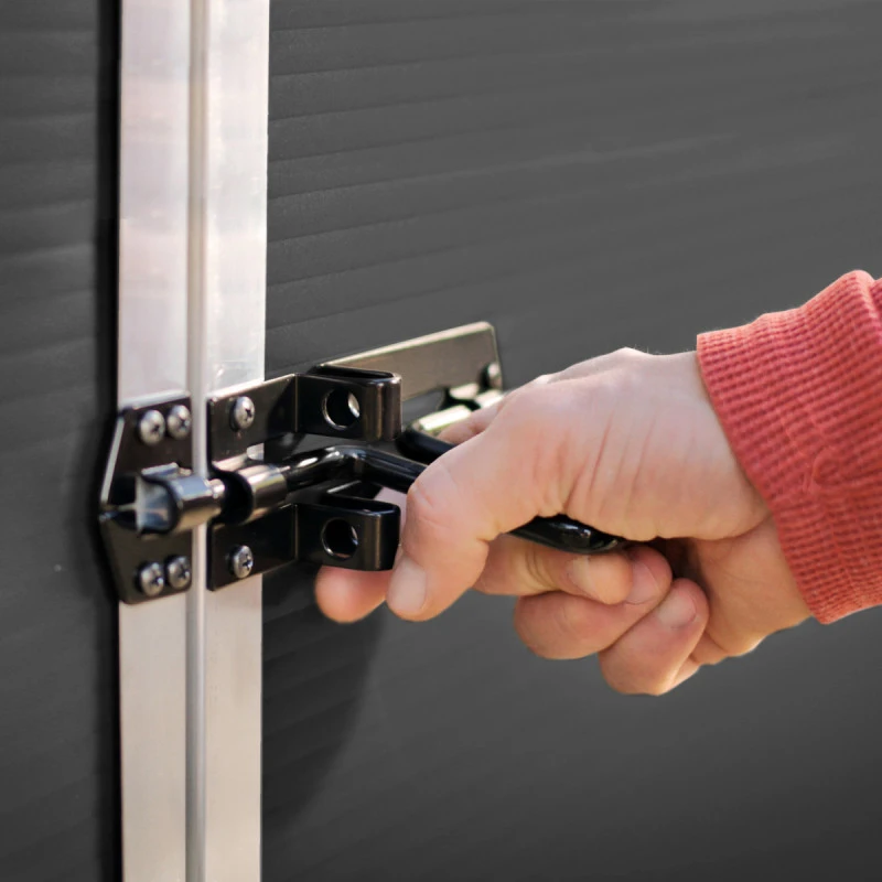 • Double porte battante avec verrous cadenassables (cadenas non inclus)