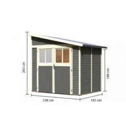 Deux grilles de ventilation sont placées sur les pignons, pour un renouvellement permanent de l’air. La large porte verrouillable (100x171cm) offre un accès aisé, et son seuil est rabaissé pour le passage d’objets roulants. Elle peut se monter avec les charnières à gauche ou à droite. Cet abri mono-pente est garanti 10 ans.