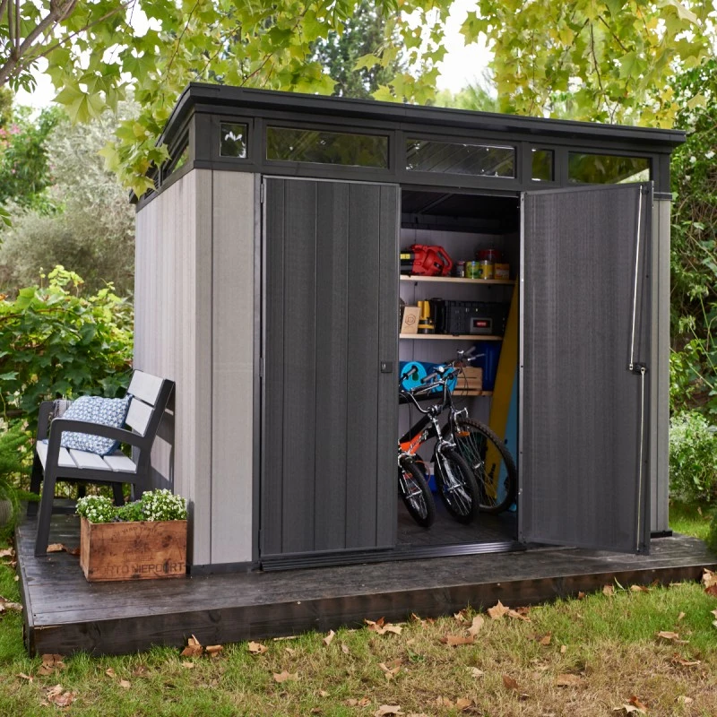 L’abri de jardin en polypropylène extrudé à double paroi de 20 mm Brossium 97 monopente de Keter présente un aspect de bois poncé très esthétique, qu’il est possible de recouvrir d’une couche de peinture acrylique selon vos goûts.