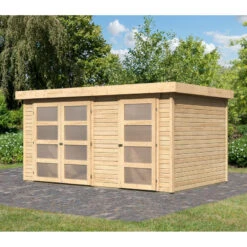 Abri De Jardin En Bois Gris Terre 4,62m² Freiburg 2 Avec Appentis De 2,80 M – Karibu