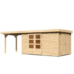 Abri De Jardin En Bois Massif 9,27m² Retola 6 Avec Armoire Intégrée Et Appentis 280cm – Karibu