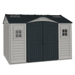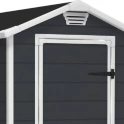 Abri De Jardin En PVC 4,9m² DECO Gris Foncé Et Blanc Grosfillex + Kit Ancrage Offert