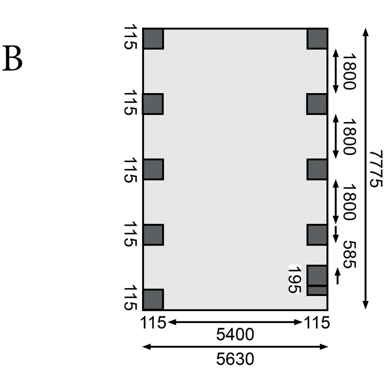 Dimensions extérieures (LxP) : 563×777,5cm