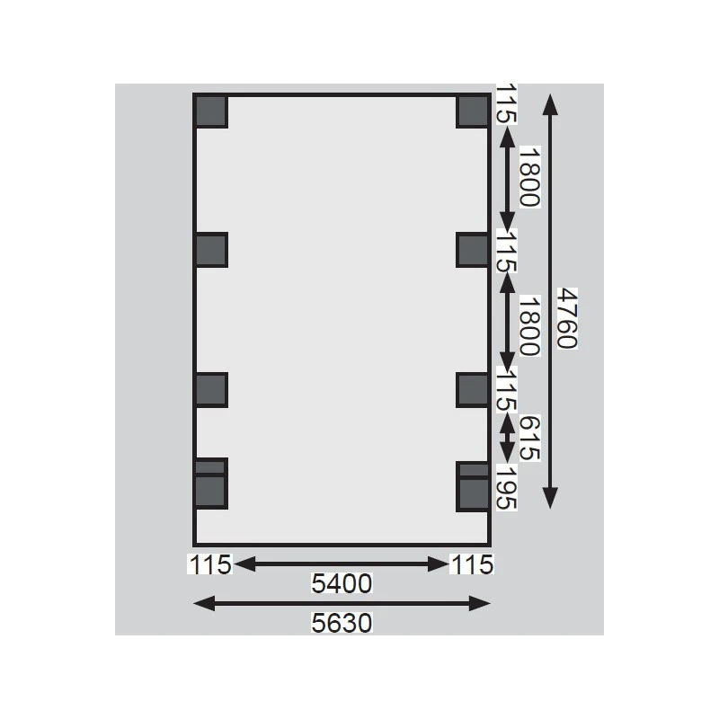 Dimensions extérieures (LxP) : 563x476cm