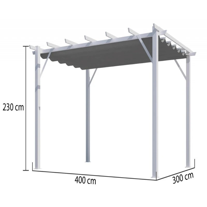 Pergola 100% Aluminium Coloris Blanc 12m² Avec Toile D’ombrage Gris 280gr/m² HABRITA