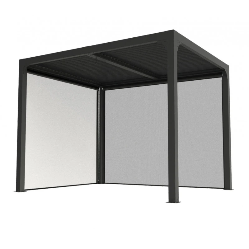 L’avis du spécialiste sur la pergola bioclimatique aluminium anthracite 7,20m² toit avec lames ovales aluminium + 2 rideaux gris pour les côtés – HABRITA :