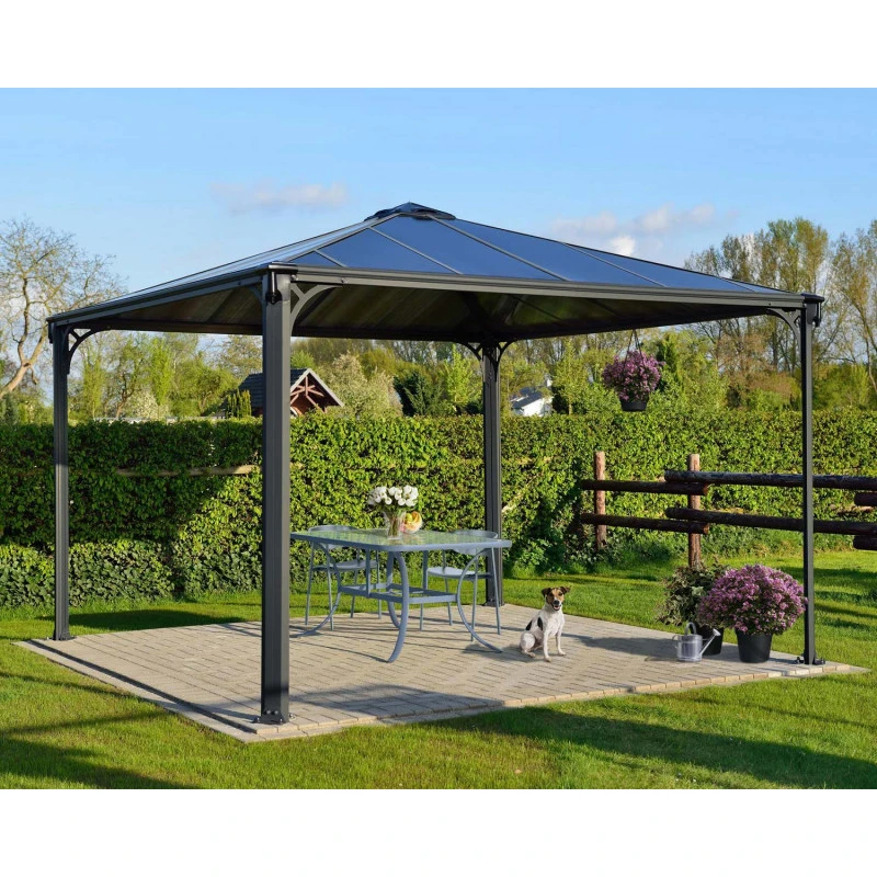 La pérgola Palermo™ de Canopia by Palram combina la elegancia clásica y una funcionalidad extraordinaria. Clásico con sus grandes formas cuadradas (295x295cm), sus postes decorados de estilo Art Nouveau, con cantoneras de acero galvanizado cortado con láser y sus paneles de techo de policarbonato teñido de bronce espectralmente selectivo.