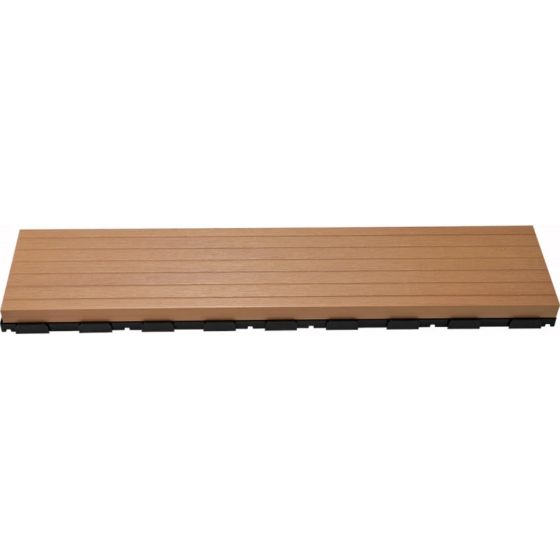 Chaque lame a un profil 6V (rainures dans la longueur de la lame) qui lui procure un caractère anti-dérapant. De ce fait, vous pouvez tout à fait poser les lames clipsables en bois composite à l’extérieur de votre abri de jardin, et créer une terrasse décorative.