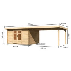 Abri De Jardin En Bois Massif 10,60m² Bastrup 7 Avec Appentis 400cm Et Paroi Arrière – Karibu