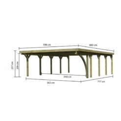 Carport Double En Bois Autoclave 28,3m², Toit En Acier Et Deux Poteaux En Arc – KARIBU