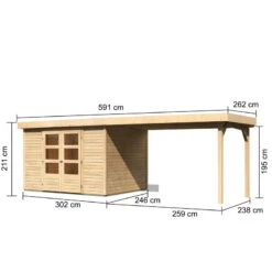 Abri De Jardin En Bois Massif 7,43m² Askola 5 Avec Appentis 280cm Et Paroi Arrière – Karibu