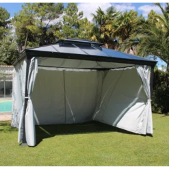 Pergola Bioclimatique Autoportante 300x300cm En Aluminium – Gris – Maia – Couleurs Du Monde