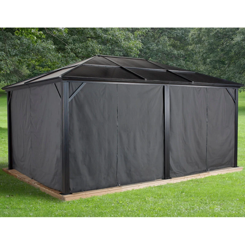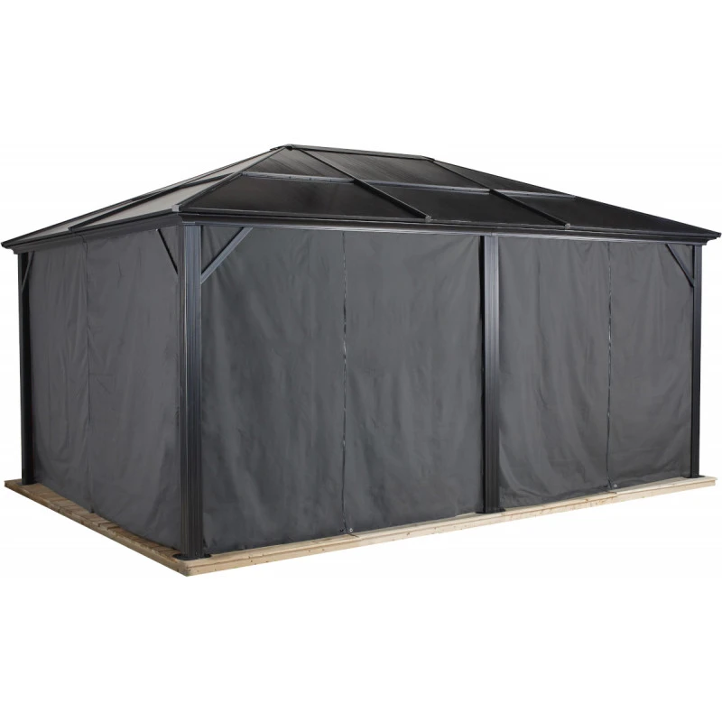 Ce set de 4 rideaux occultants en polyester gris est uniquement adapté à la tonnelle pergola Meridien 12×16 de marque SOJAG.