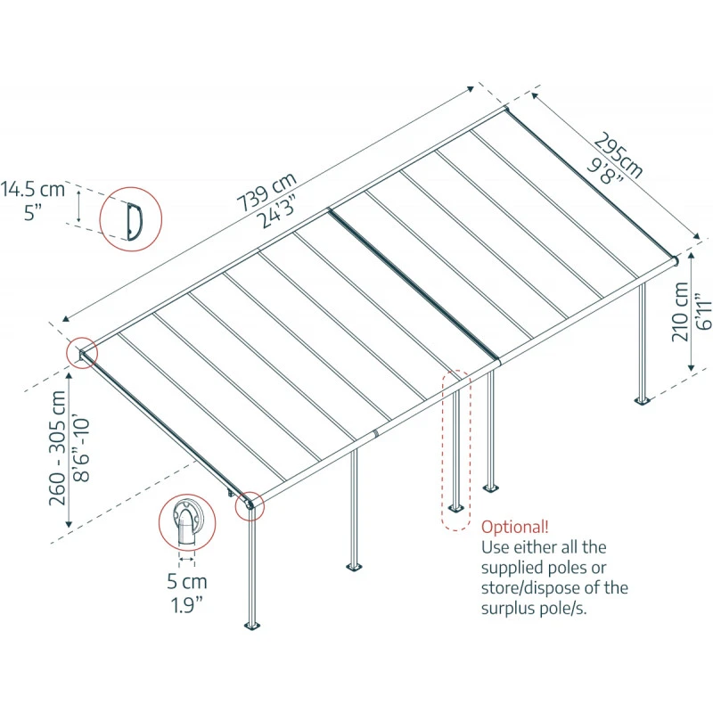 L’avis du spécialiste sur le toit de terrasse 295x739cm en aluminium gris et polycarbonate 6mm SIERRA – Canopia by Palram :
