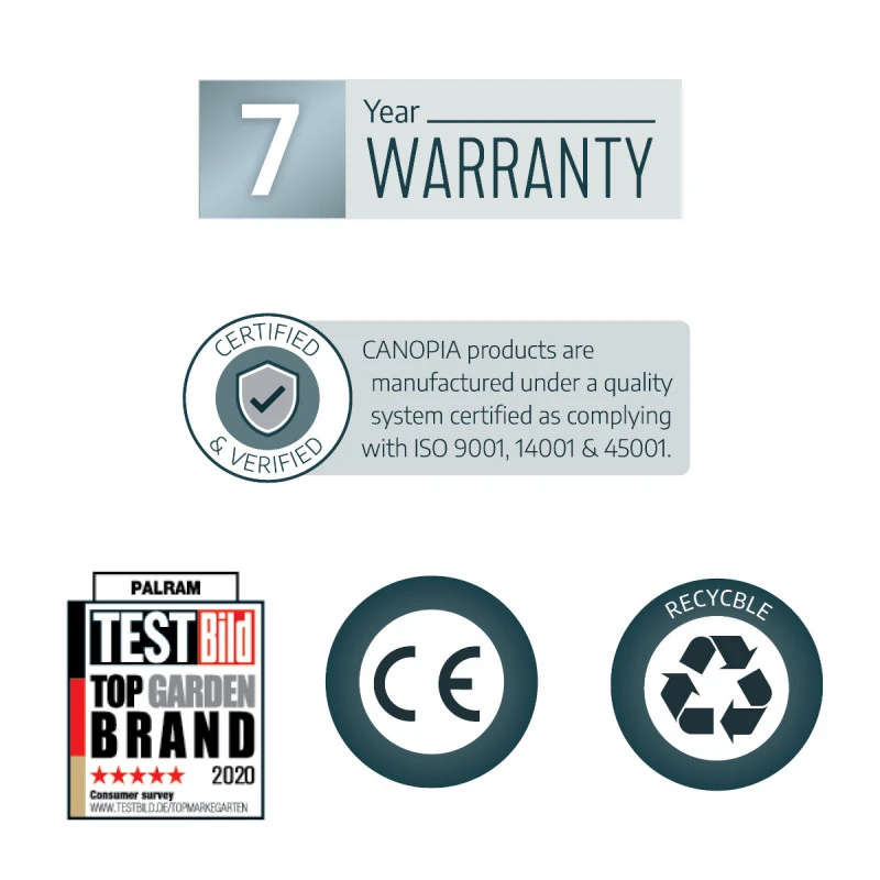 Ajoutez une touche de confort à votre terrasse, et appréciez un moment de sérénité à l’extérieur en toute quiétude, avec notamment une garantie de 7 ans.