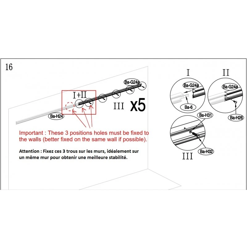 . Dimensions profilé mural (LxlxH) : 305x5x9,8cm